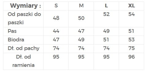 | Dł. od pachy | 74 | 74 | 74 | 75 | 75 |