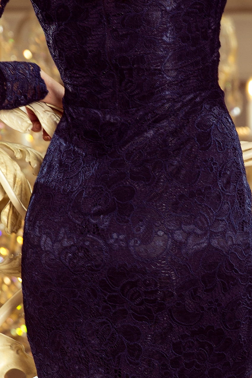170-7 Koronkowa sukienka ołówkowa z długim rękawkiem i DEKOLTEM - GRANATOWA