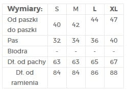 | Dł. od pachy (D) | 62 | 63 | 63 | 65 | 67 |