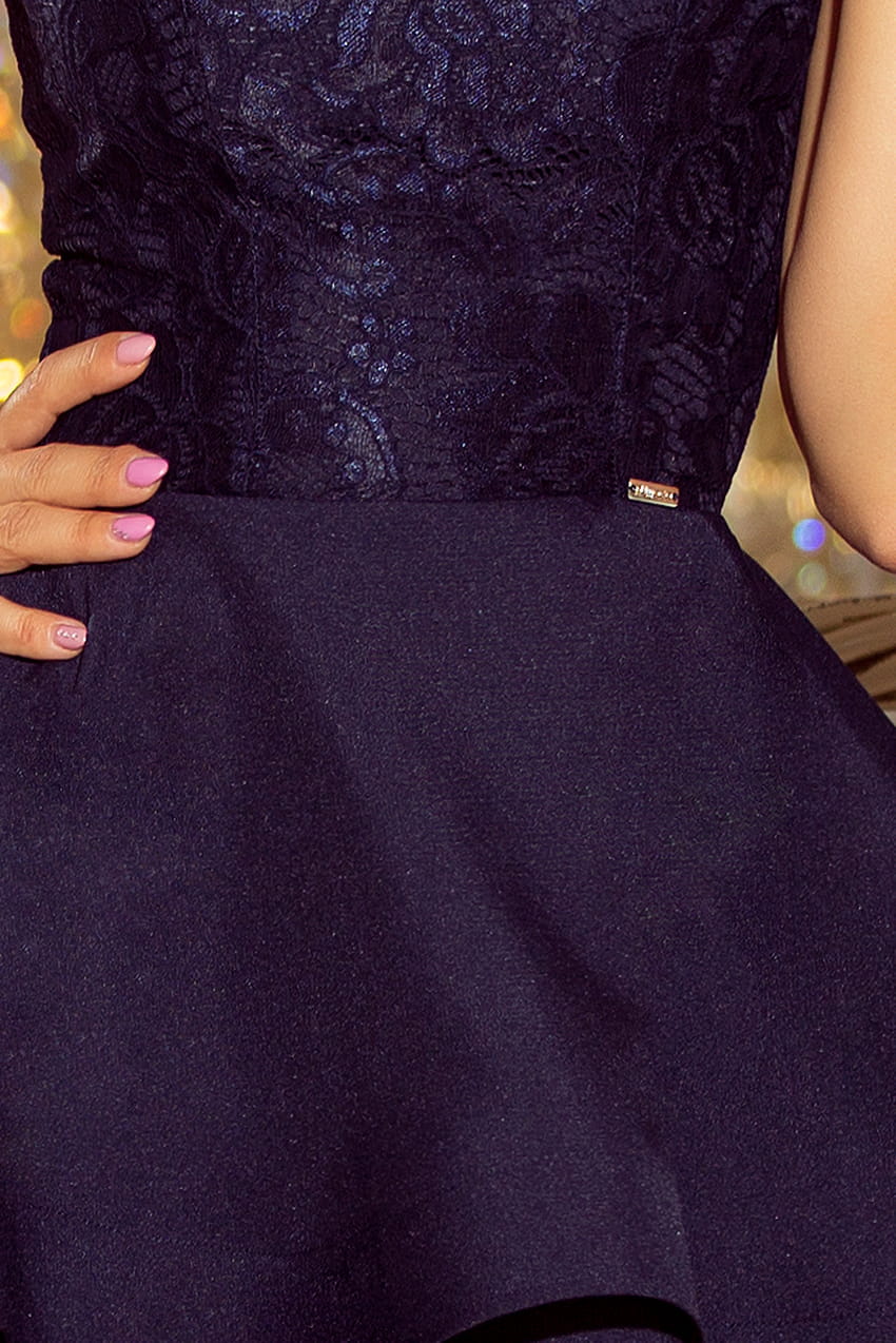 205-3 Rozkloszowana sukienka z koronkową górą - GRANATOWA