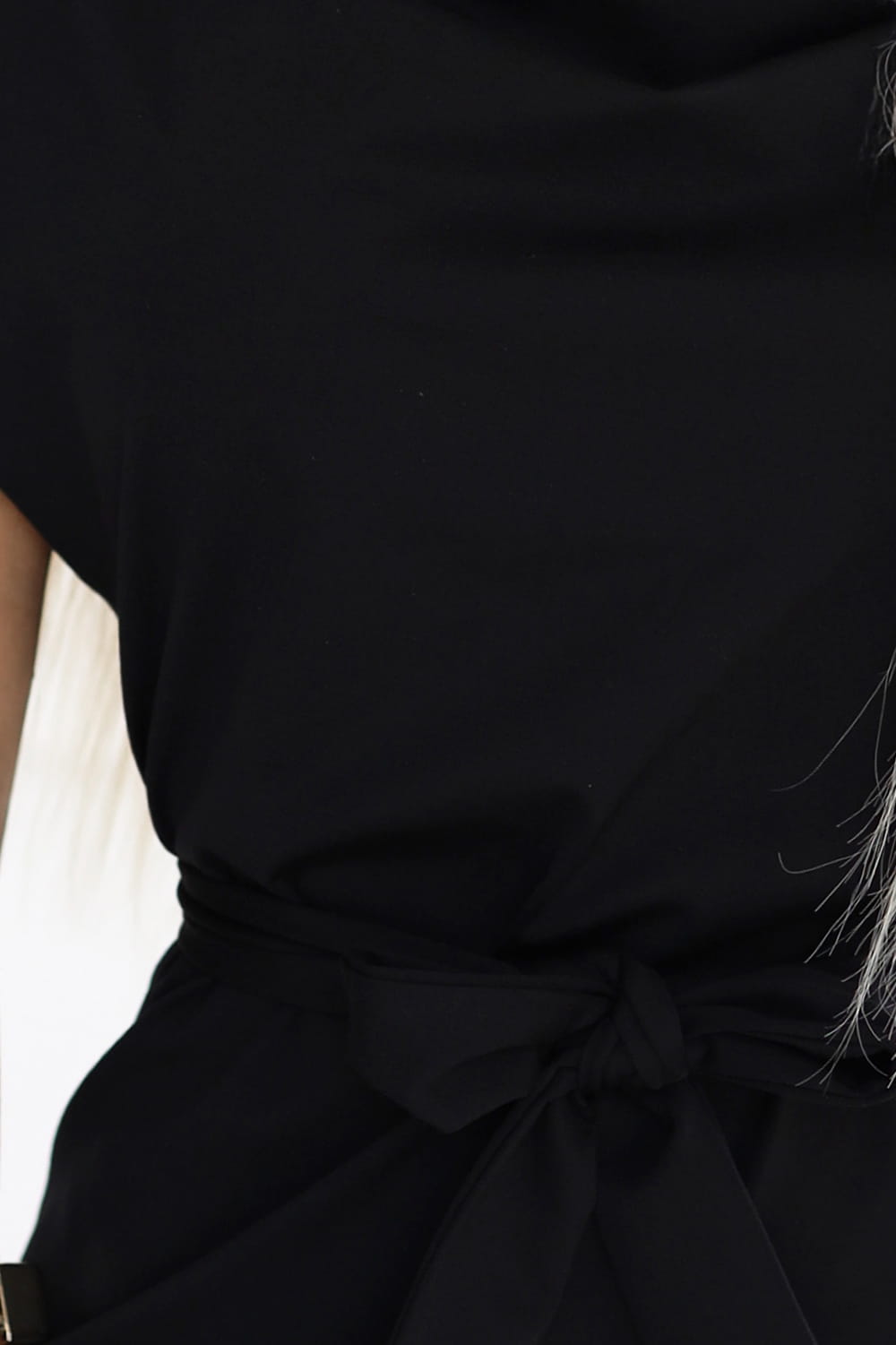 240-8 ROXI sukienka z asymetryczną spódnicą i paskiem - CZARNA