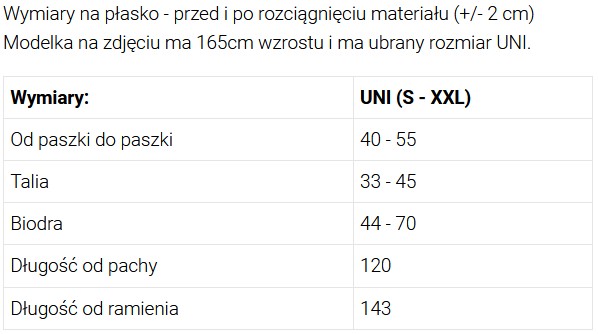 Modelka na zdjęciu ma 165cm wzrostu i ma ubrany rozmiar UNI.