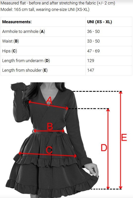 Modelka: 165 cm wzrostu, ubrany rozmiar UNI (XS-XL)