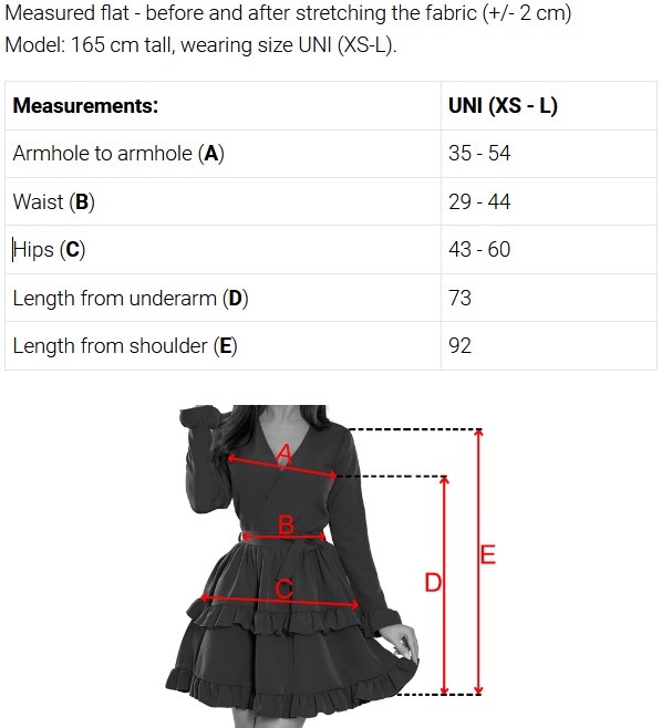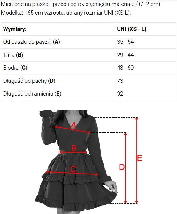 Modelka: 165 cm wzrostu, ubrany rozmiar UNI (XS-L).