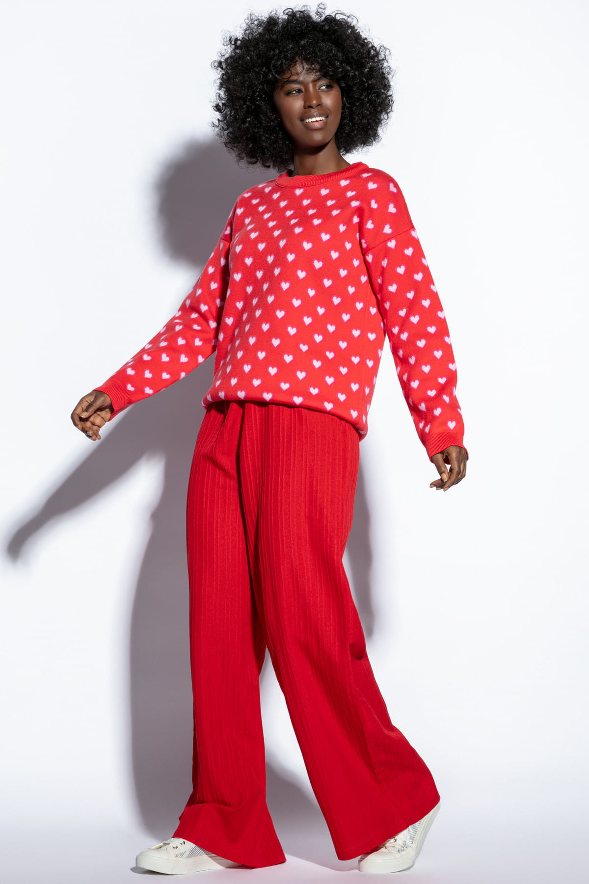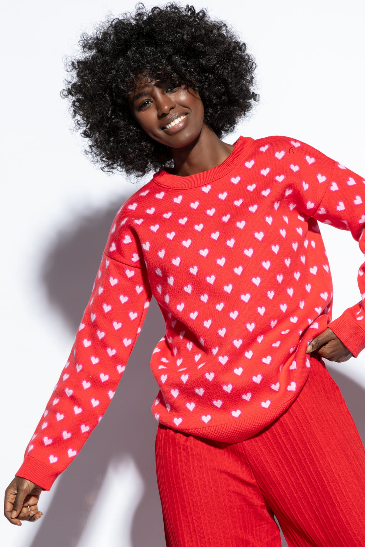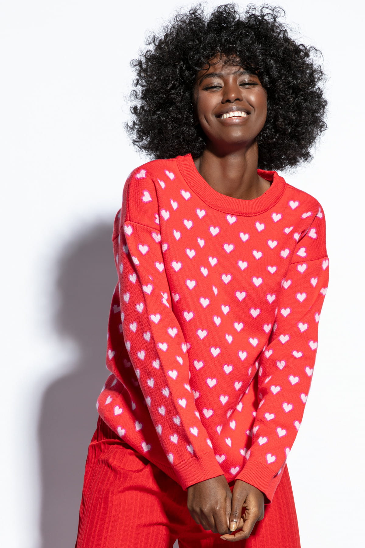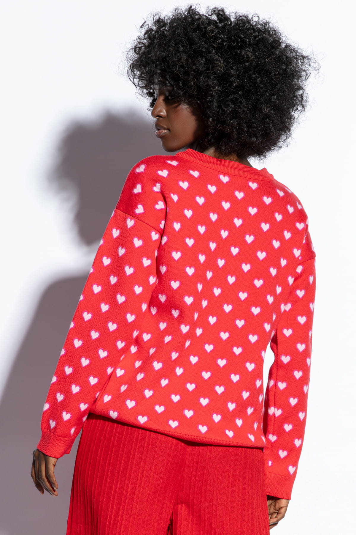 Bawełniany sweter w serduszka F1806 czerwony