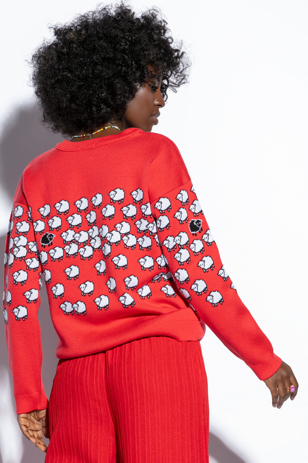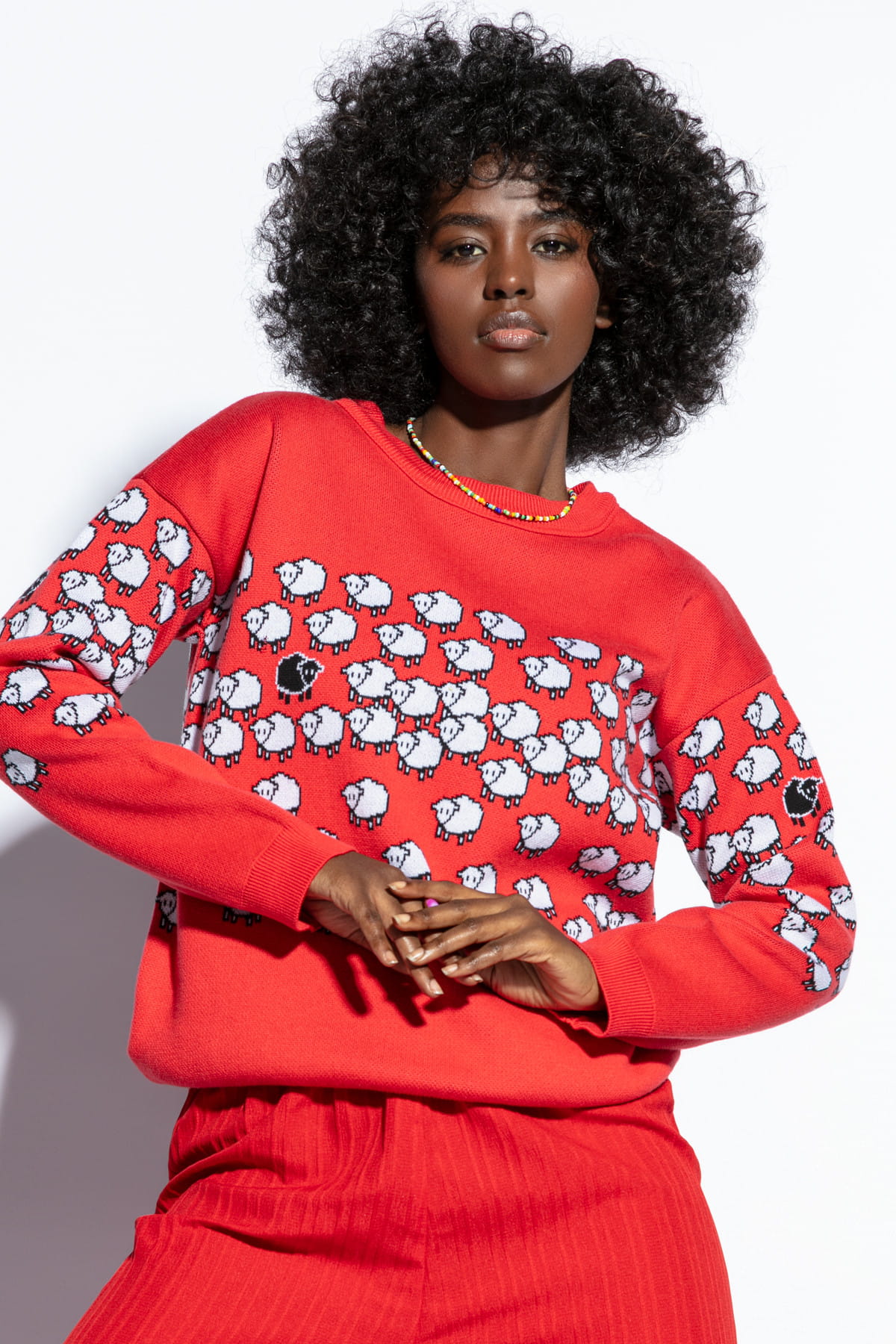 Bawełniany żakardowy sweter owieczki F1800 czerwony
