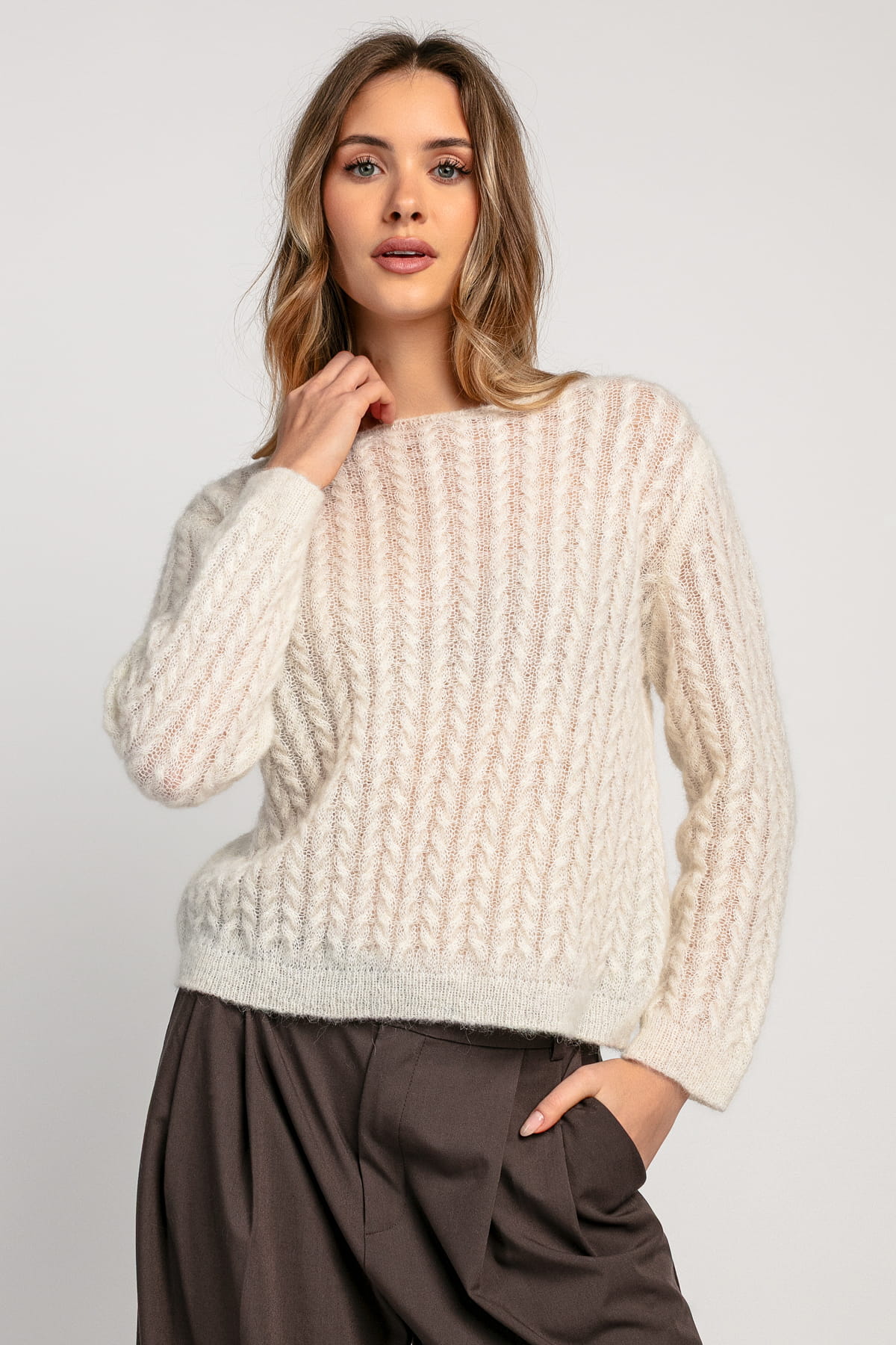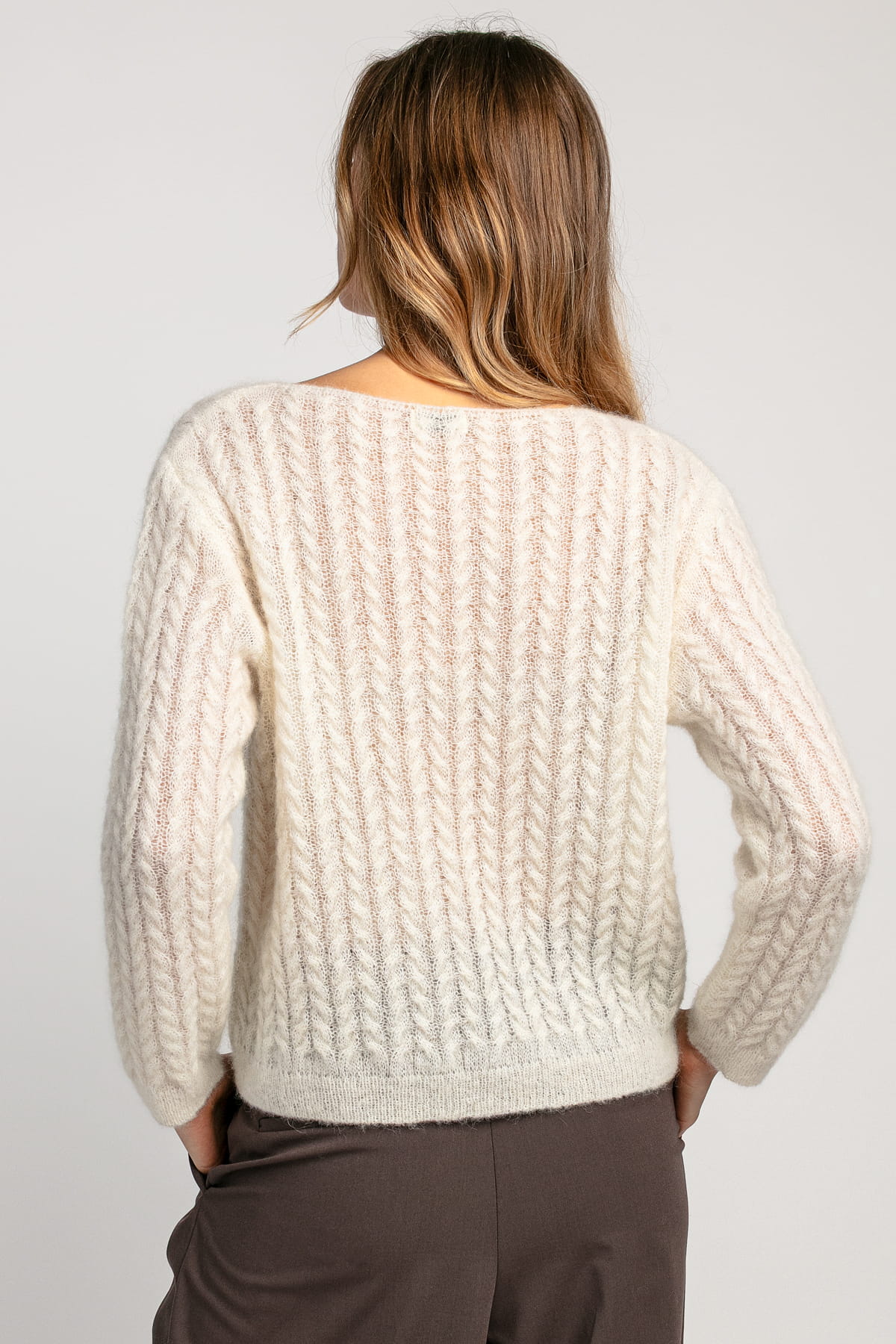 Delikatny sweter mgiełka z wełny alpaki F1981 ecru
