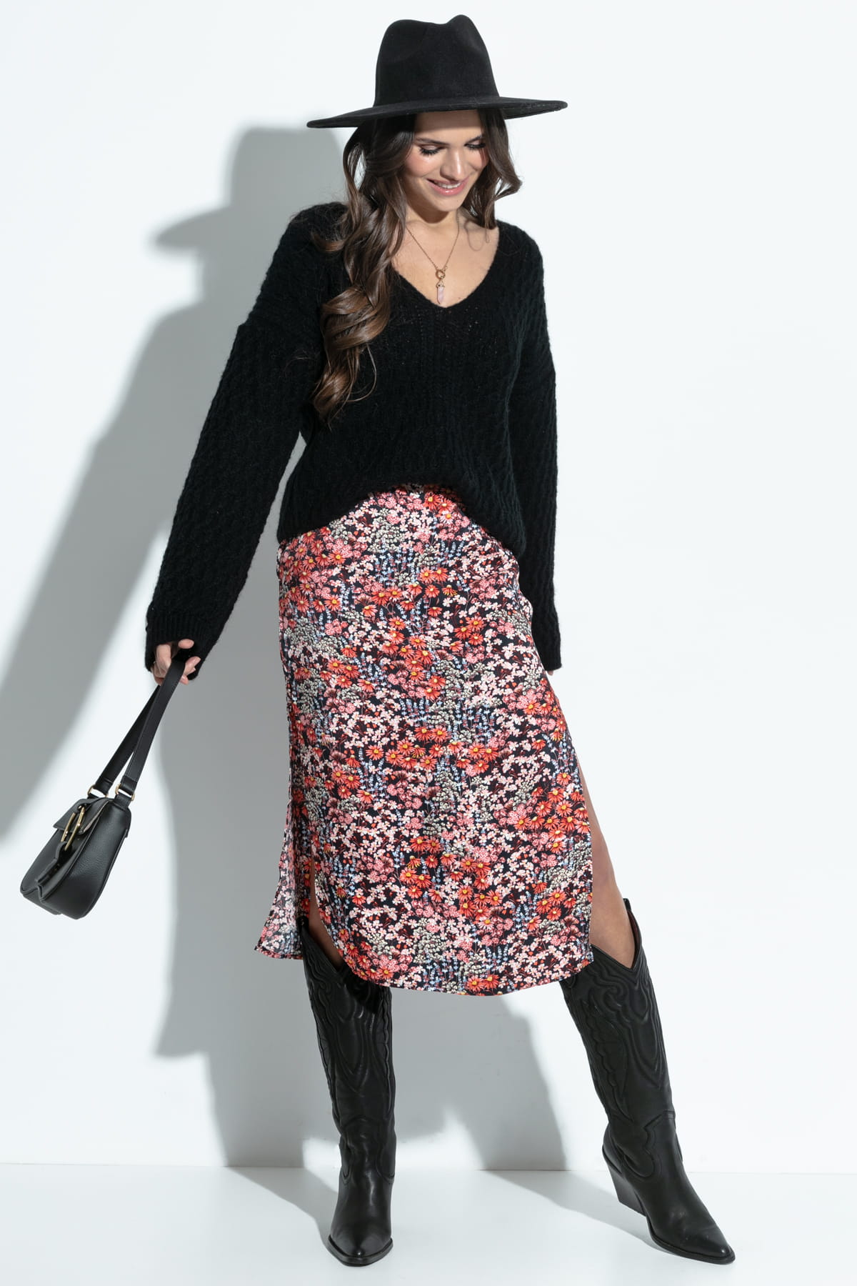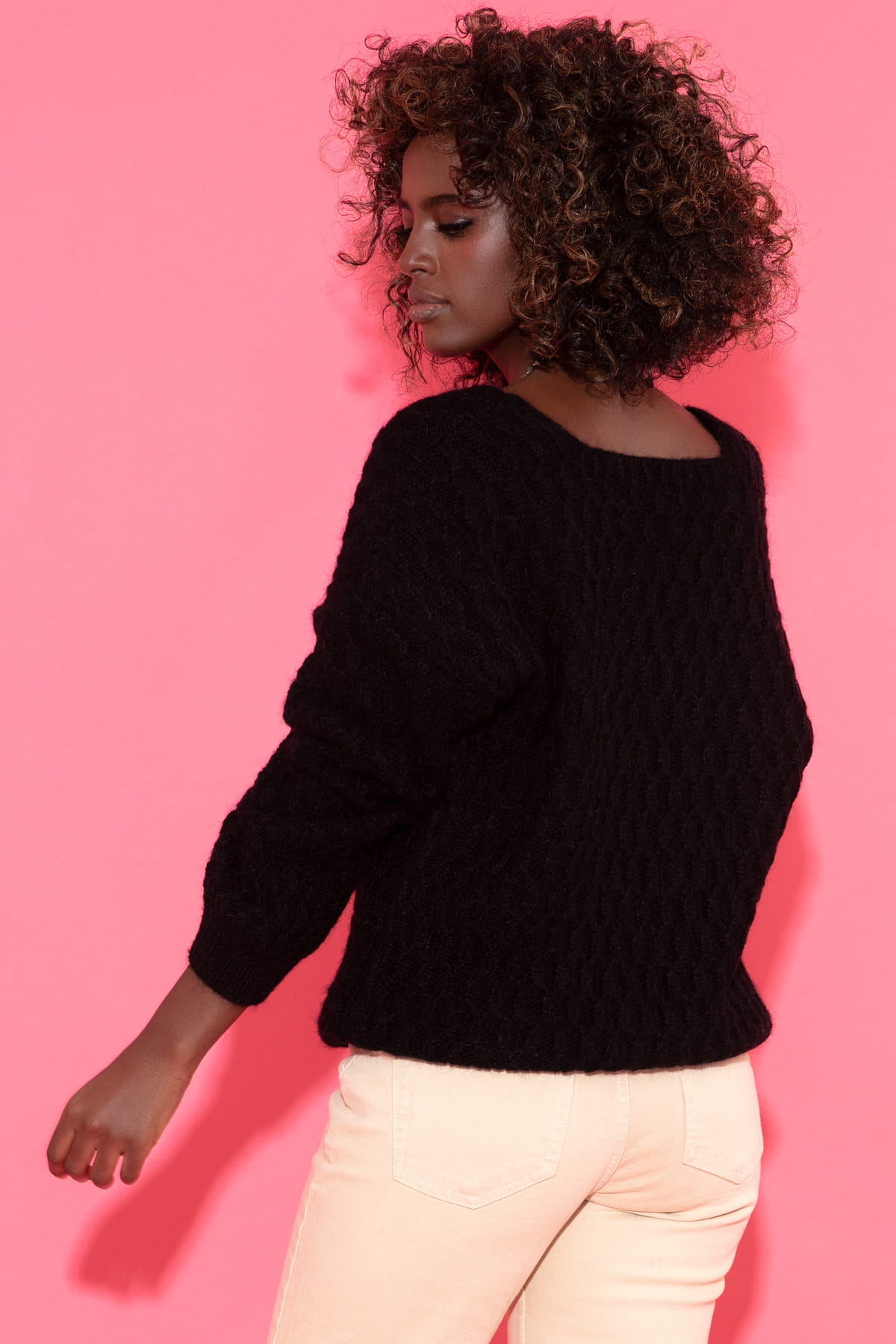 Elegancki sweter z dużym dekoltem F1377 czarny
