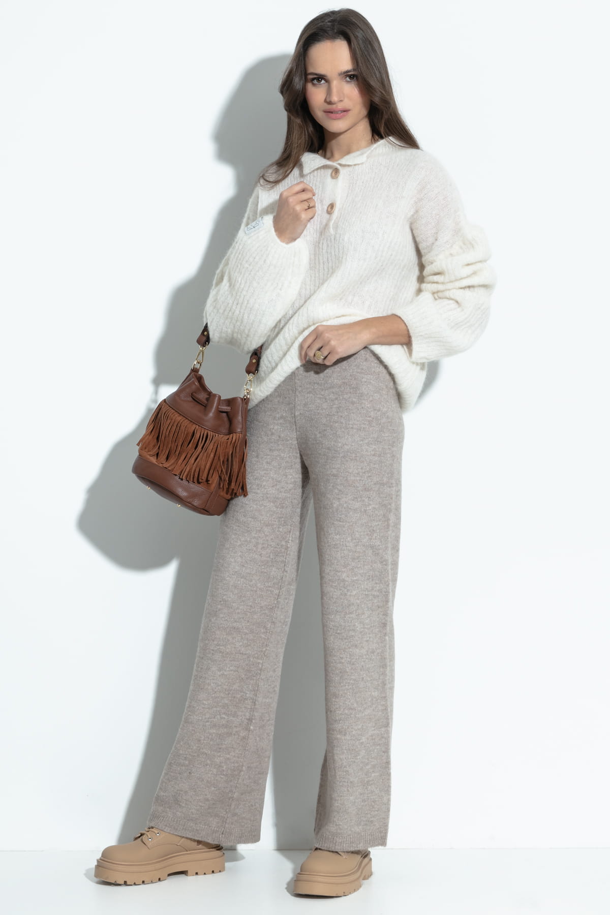 Elegancki zapinany sweter z wełny alpaki F1393 ecru