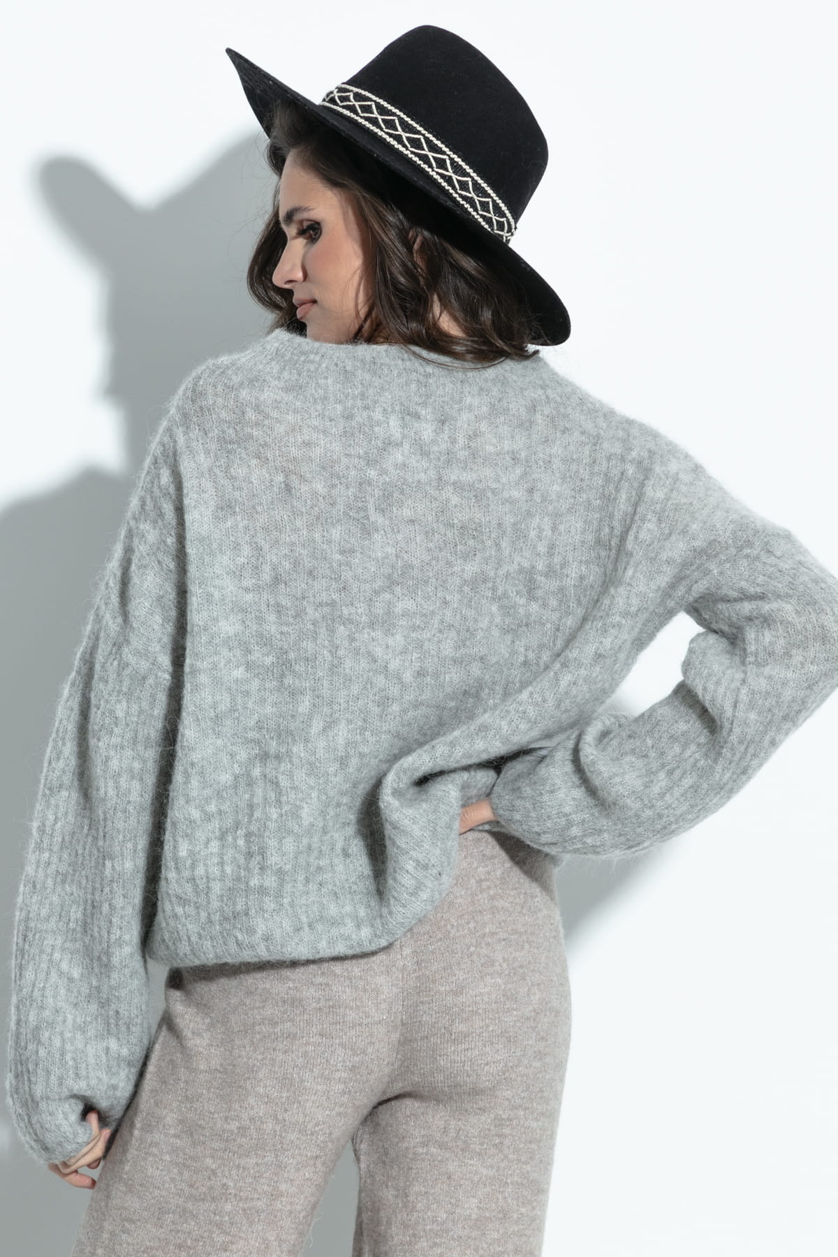 Elegancki zapinany sweter z wełny alpaki F1393 szary