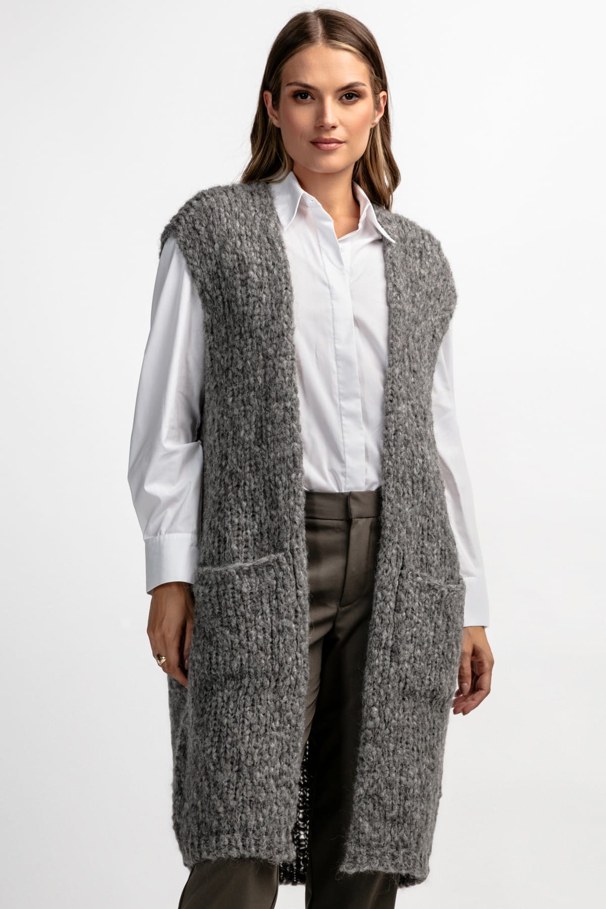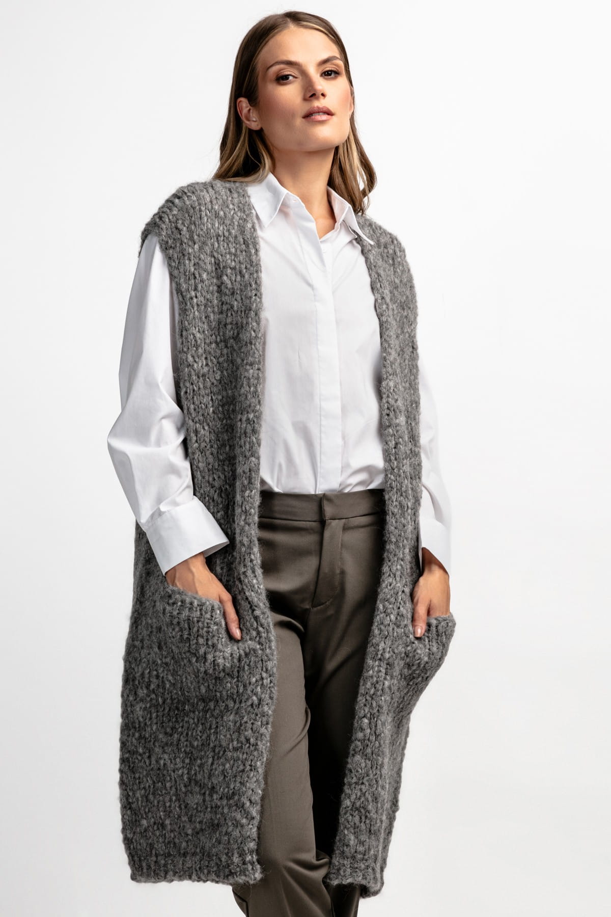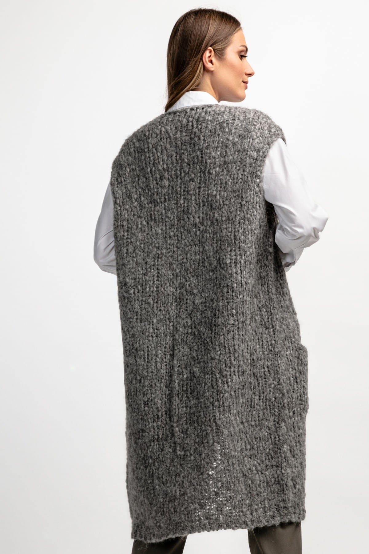 Kamizelka z niefarbowanej wełny alpaki z kieszeniami F1882 szara