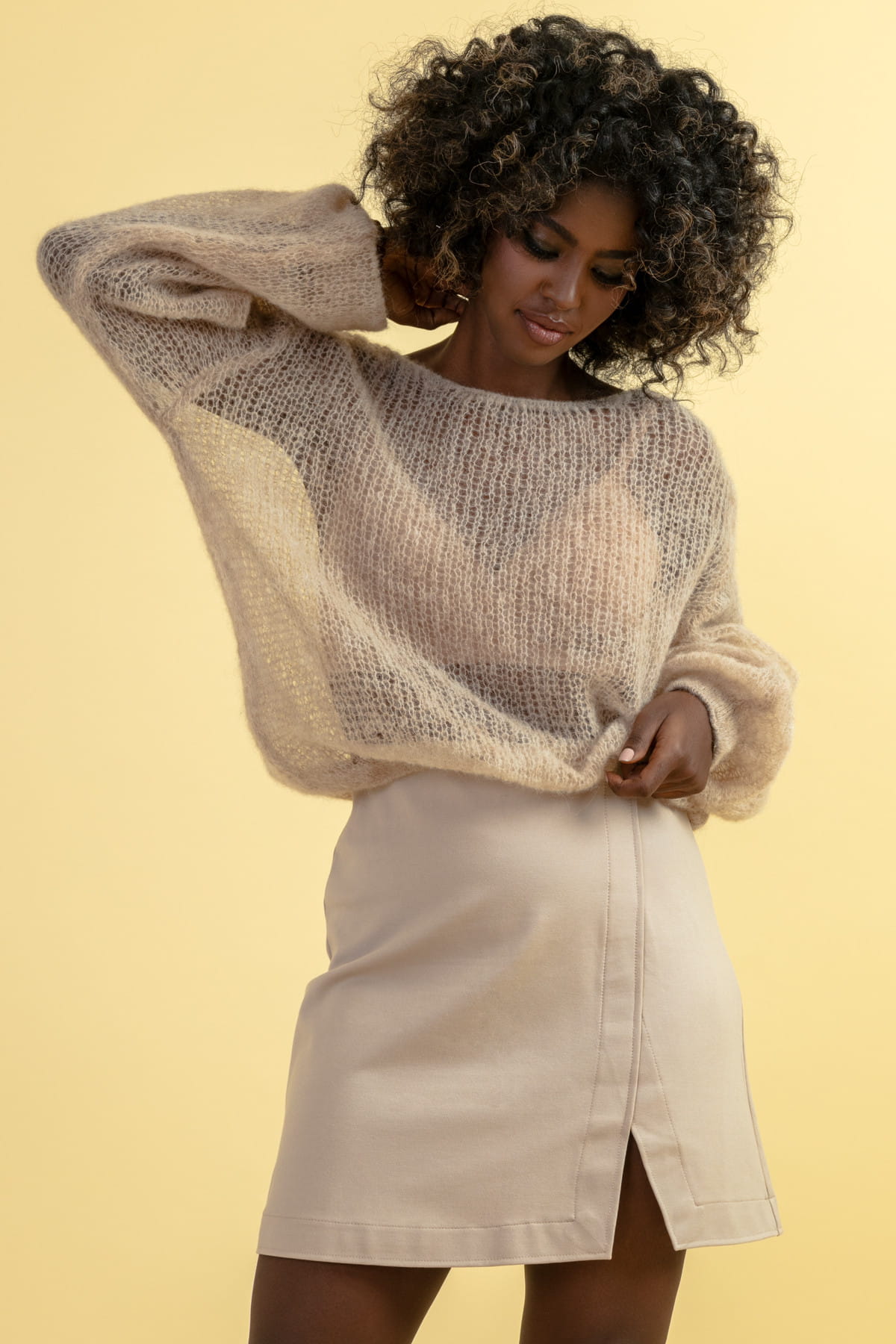 Lekki sweter z wełny alpaki F1663 beżowy