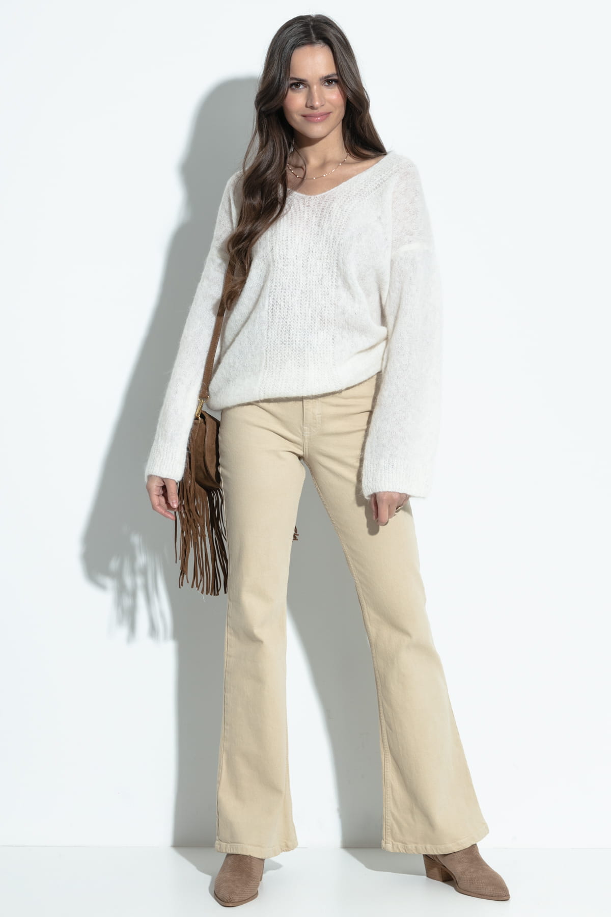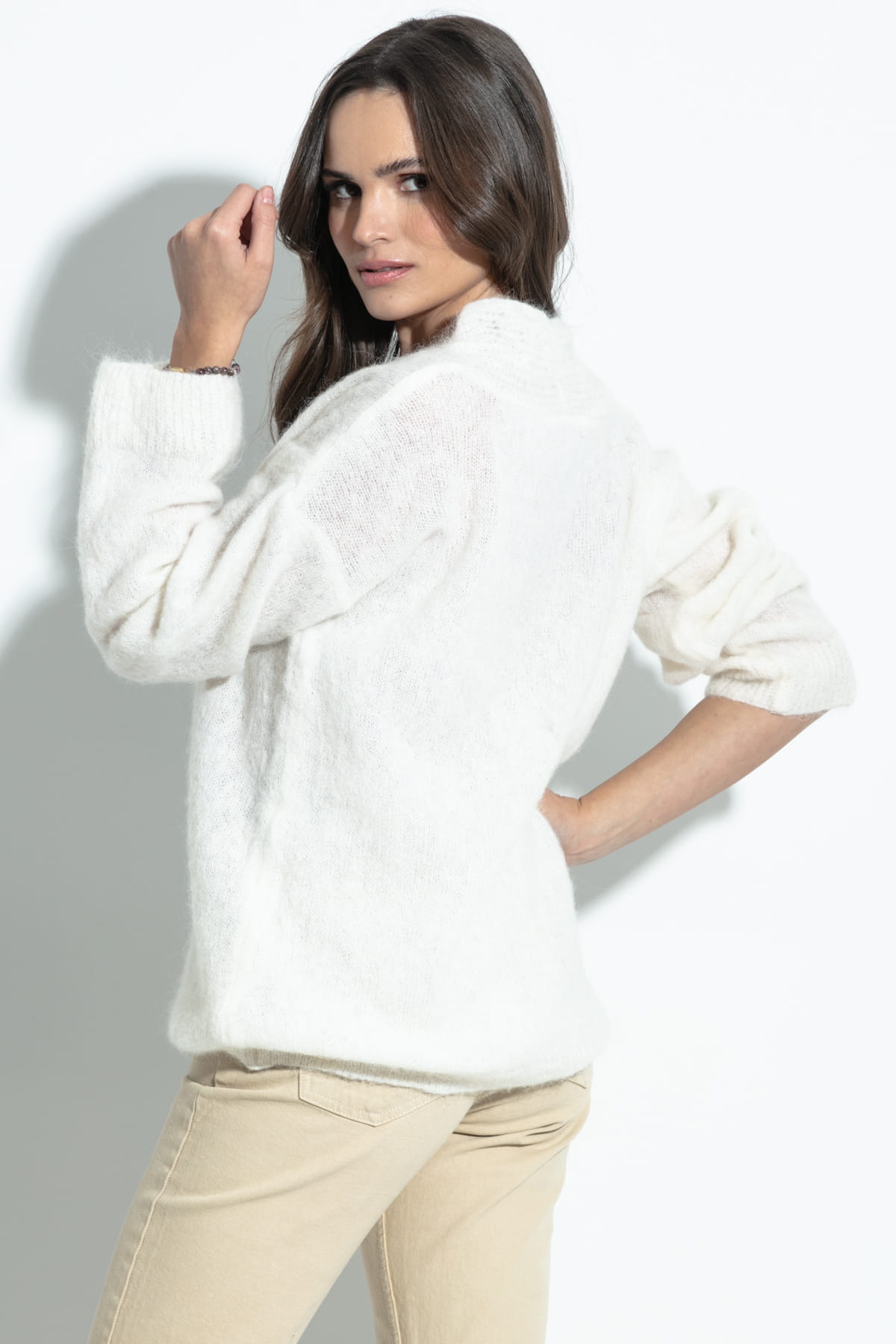 Sweter z wełny alpaki z dekoltem F1395 ecru