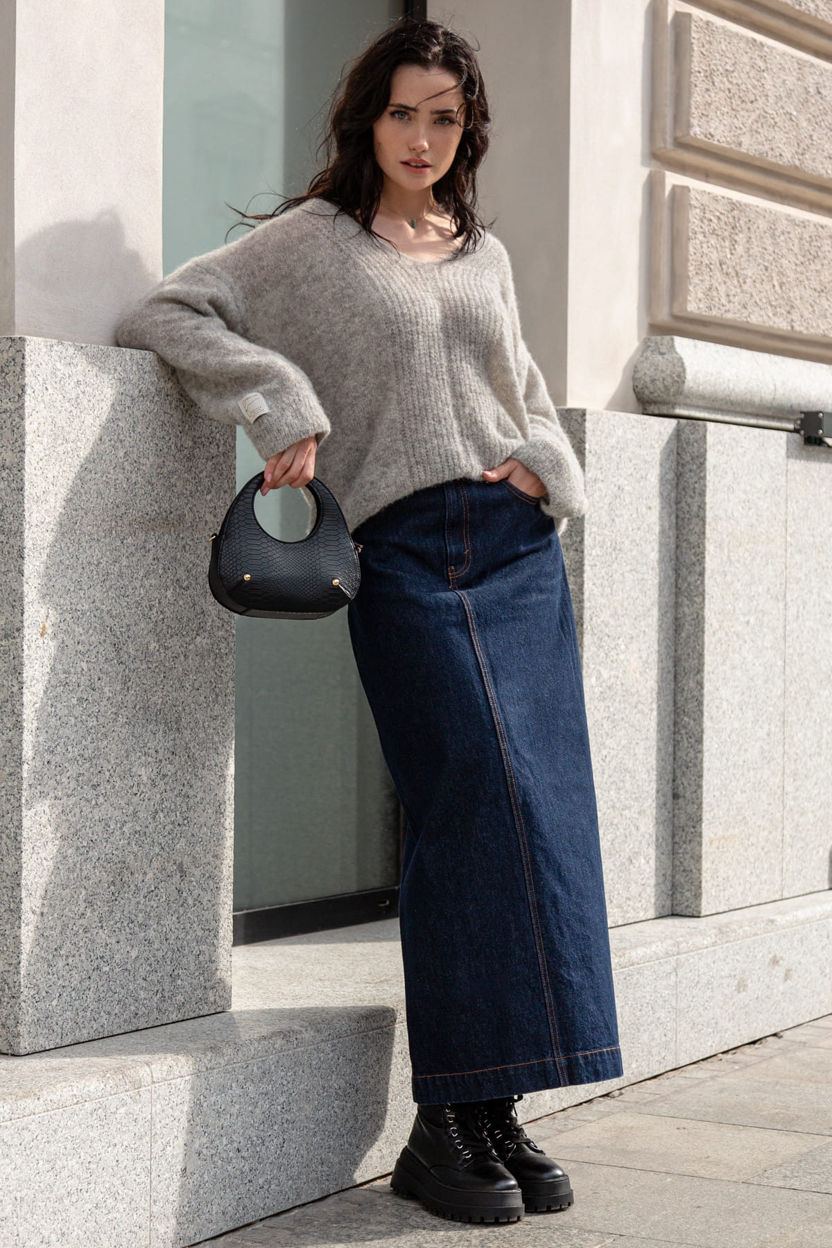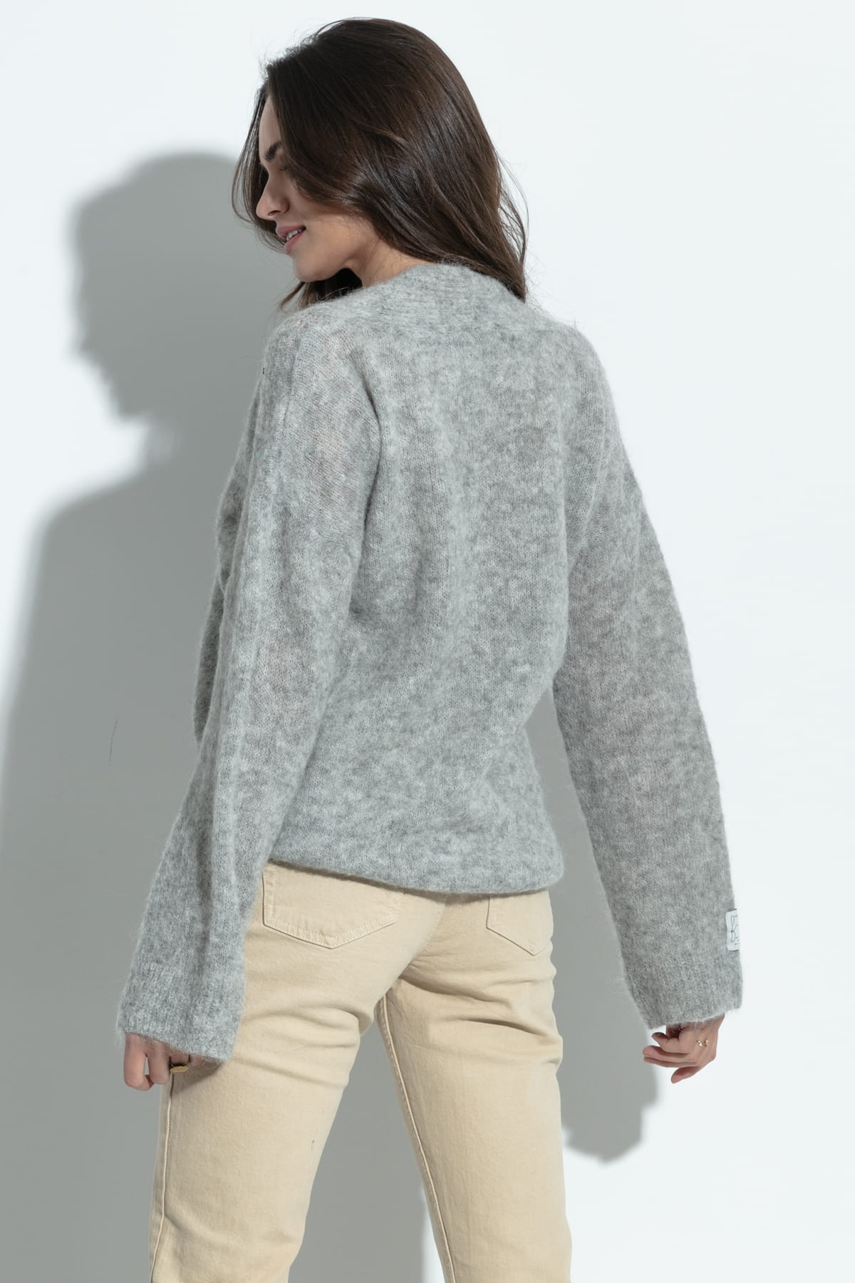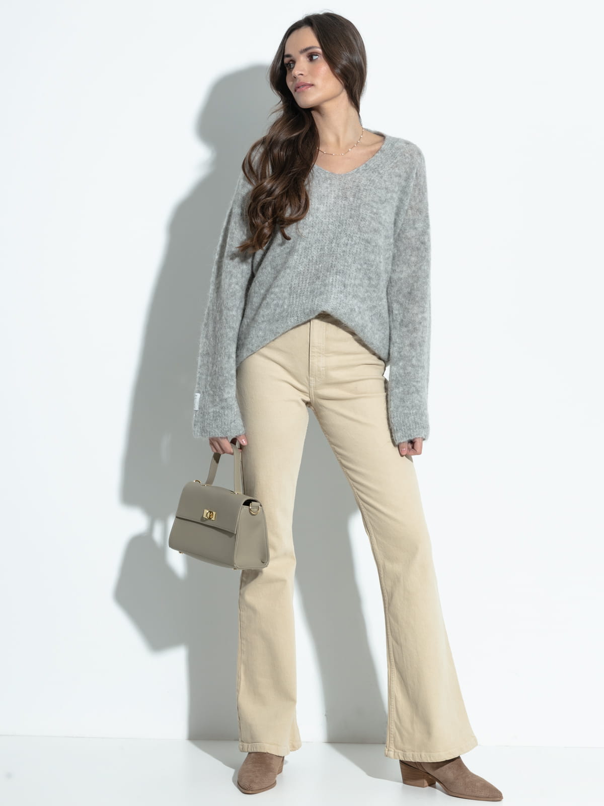 Klasyczny, elegancki sweterek z dekoltem w serek z doskonałej jakość wełny alpaki, wyjątkowo miękki, z dłuższym włosem, będzie towarzyszył Ci przez wiele sezonów. Wełna z jakiej udziany jest sweter to naturalne kolory futra alpak - nie jest barwiona żadnymi barwnikami.