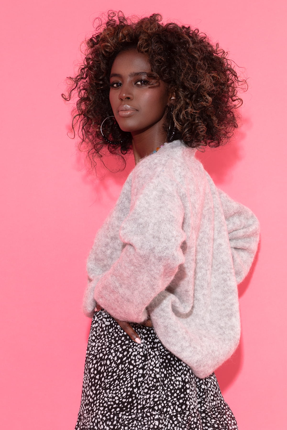 Krótki kardigan z kapturem bomberka – wełna i alpaka F580 różowy