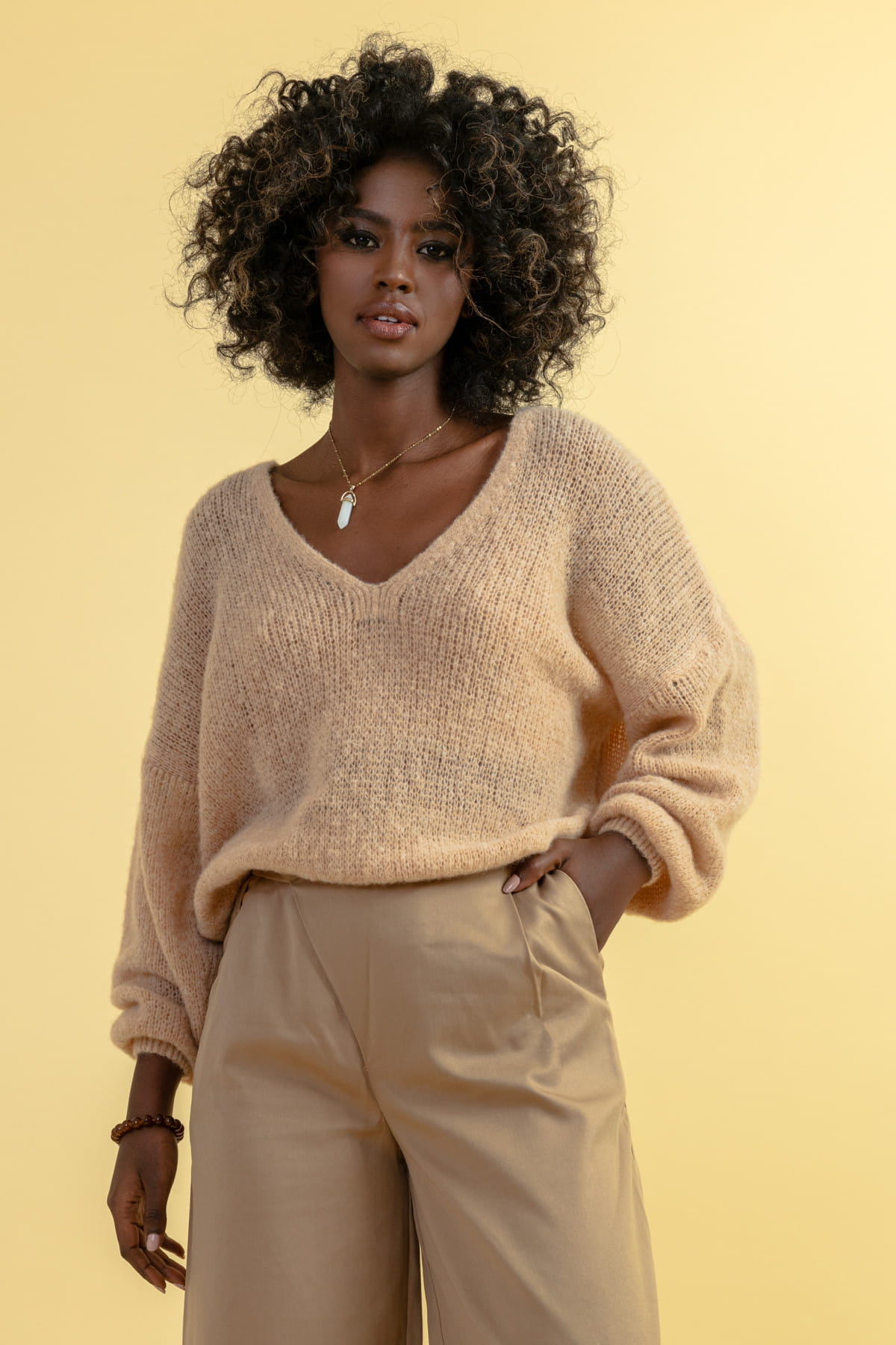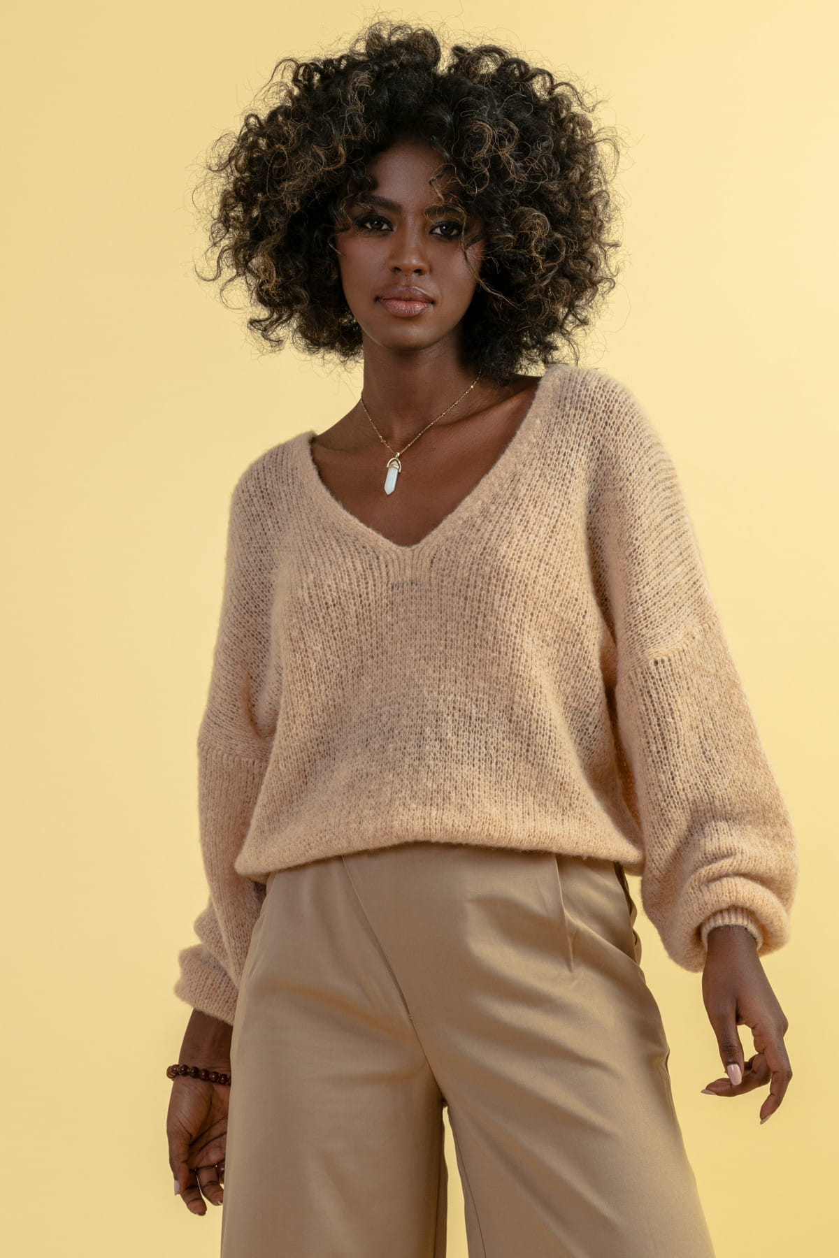 Sweter z wełny merynos F1670 kość słoniowa