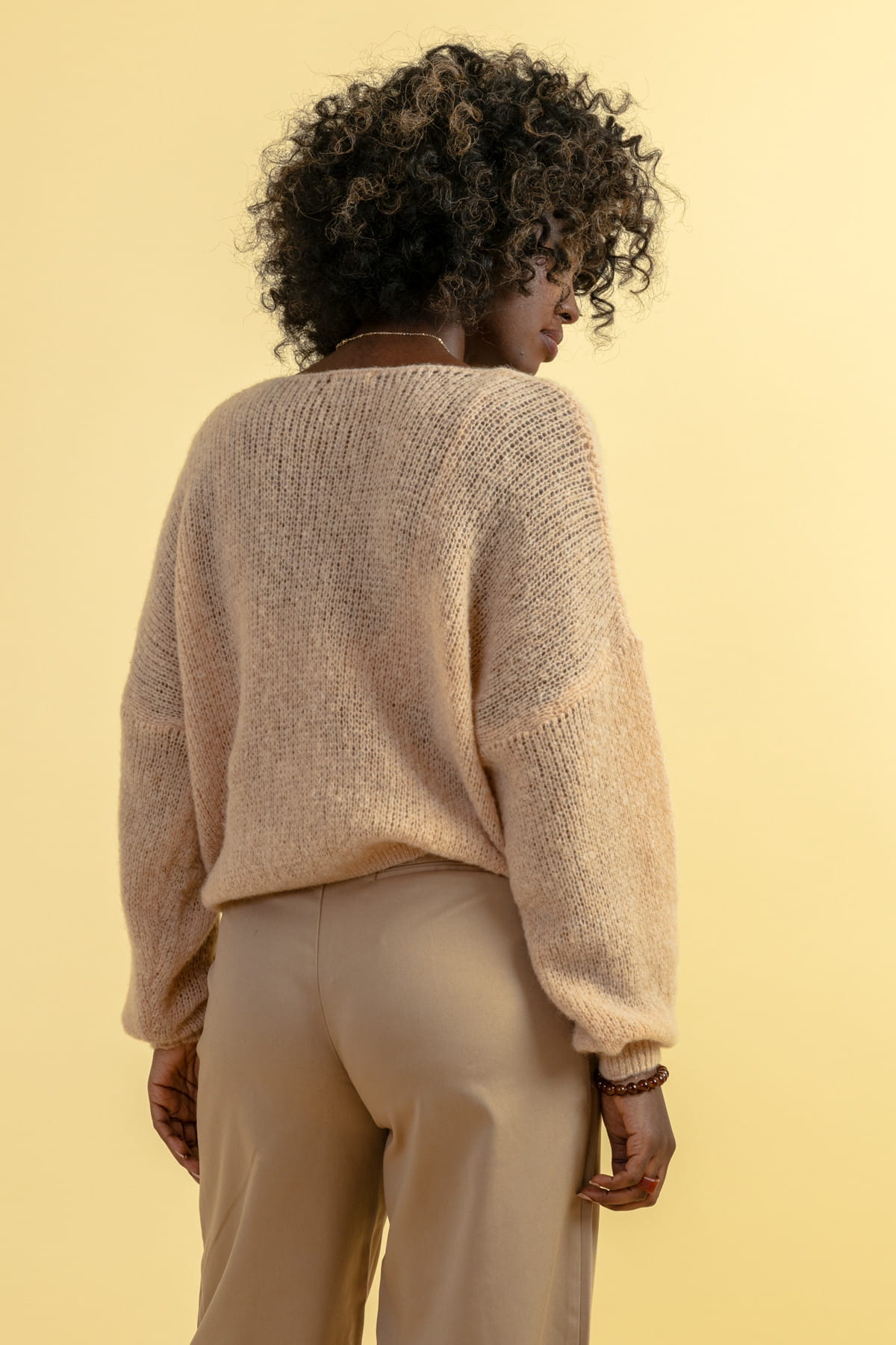 Możesz prać sweter również ręcznie, ale upewnij się, że używasz delikatnego detergentu do wełny i wody o temperaturze mniejszej niż 30 ° C.