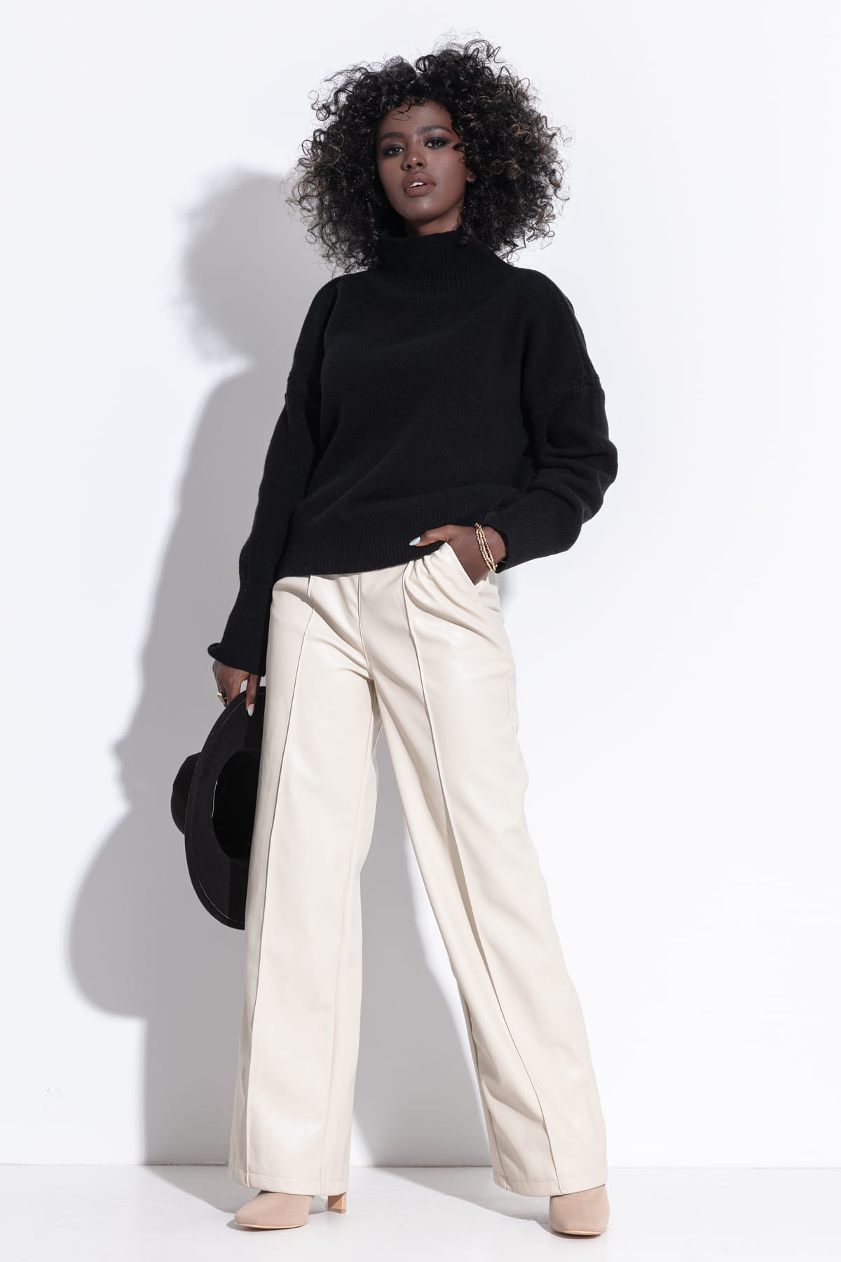 Elegancki wełniany sweterek z golfem o swobodnym fasonie, który sprawdzi się na wiele okazji. Dopasujesz go do ulubionych jeansów, eleganckich spodni, czy spódnicy.