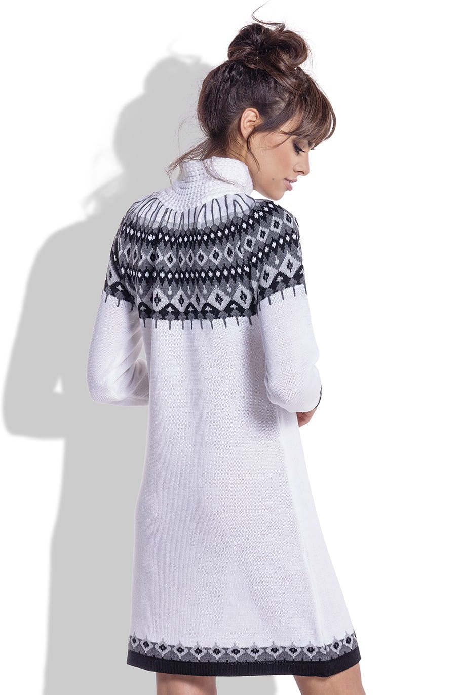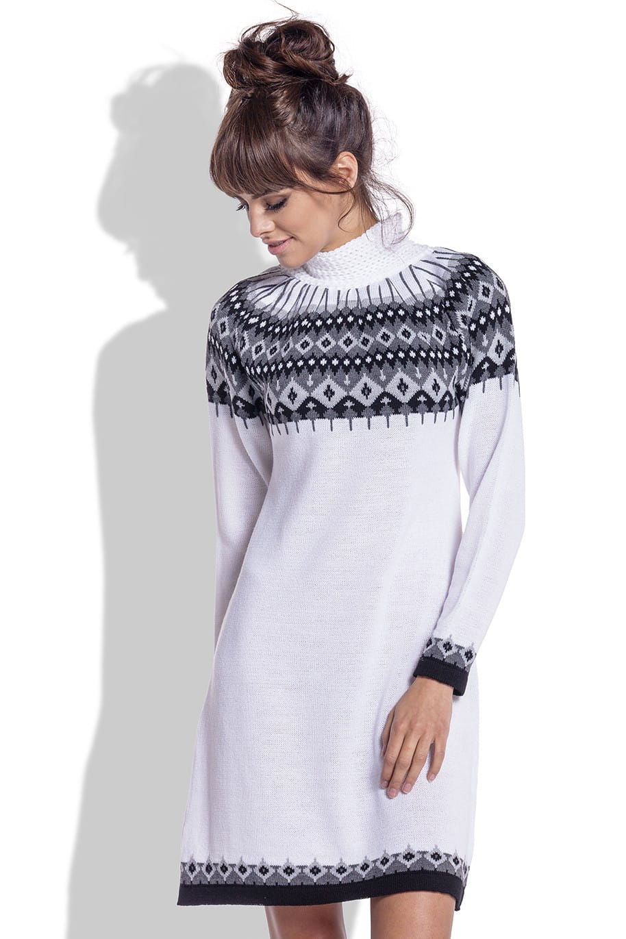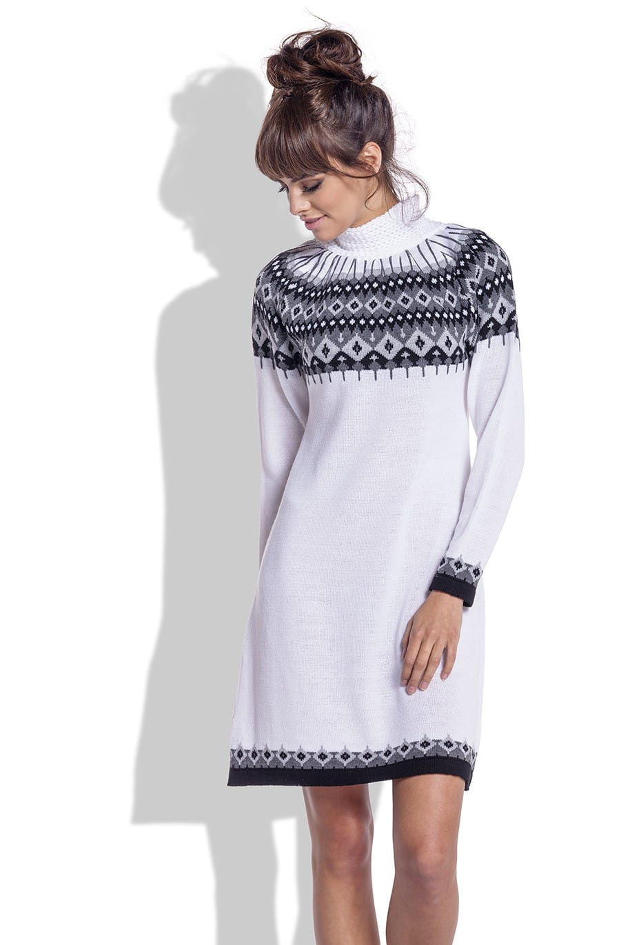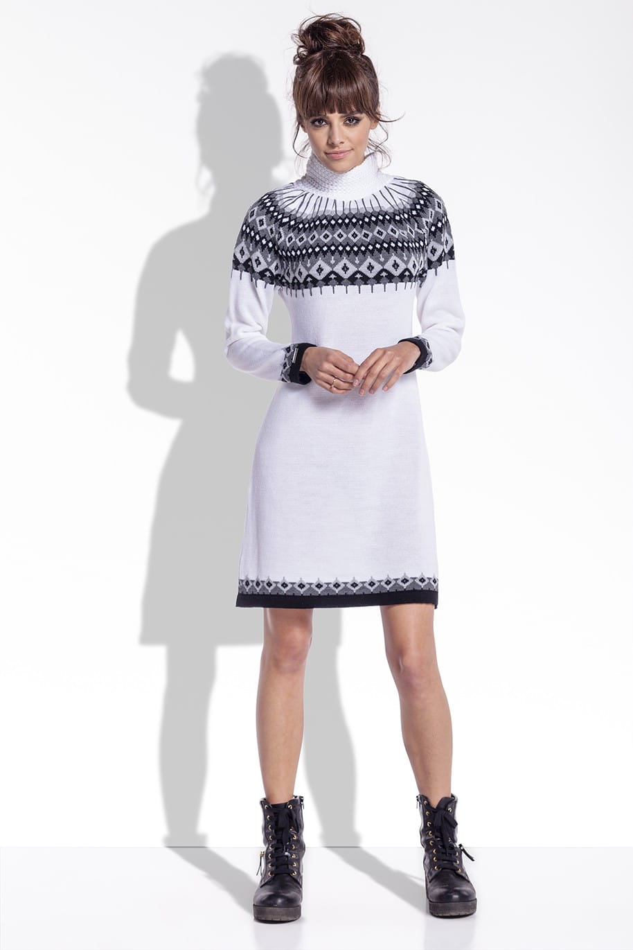 Żakardowa sukienka z norweskim wzorem F346 biała