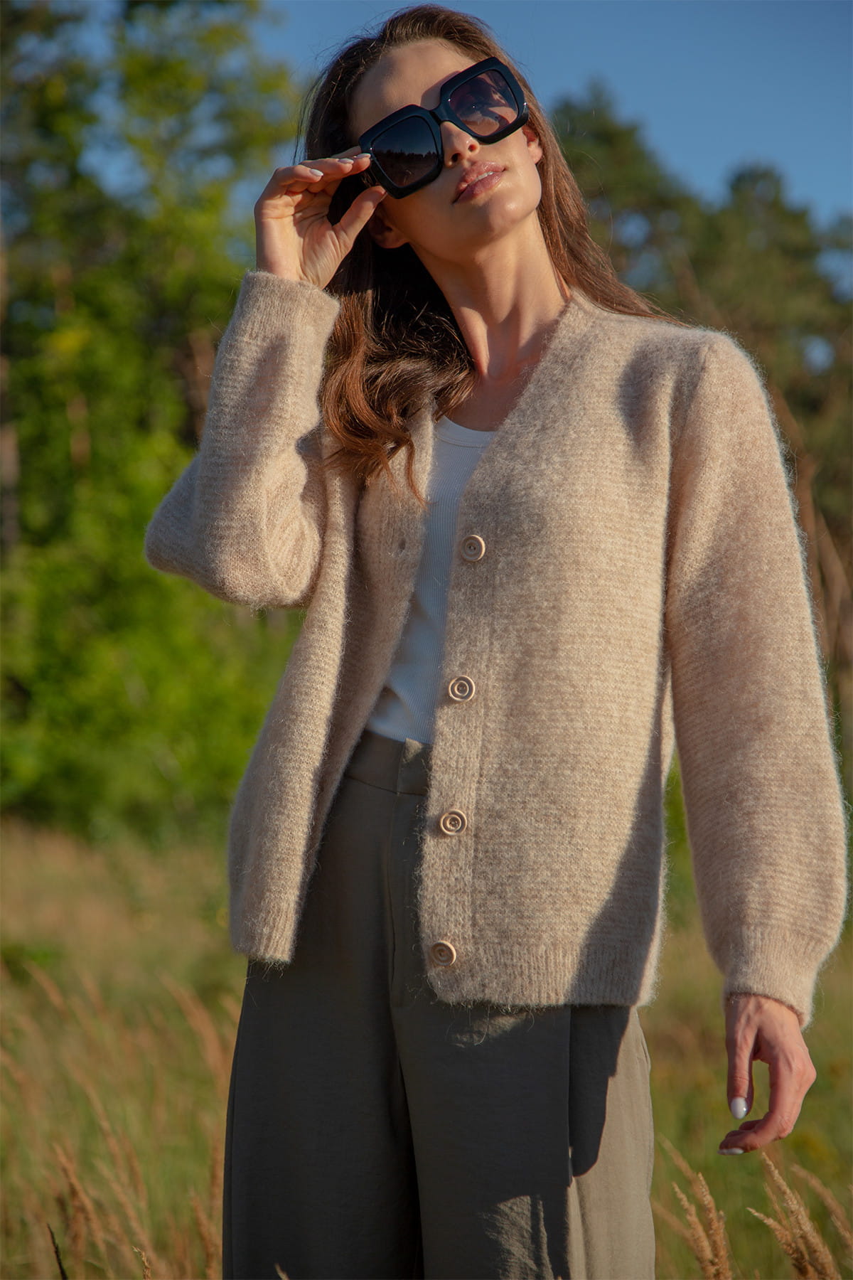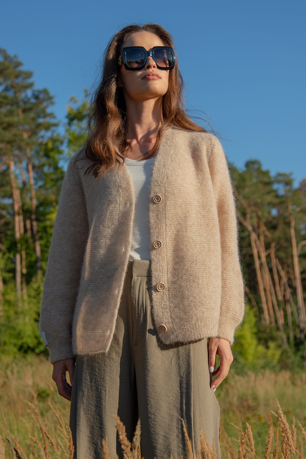 Zapinany kardigan z niefarbowanej wełny alpaki będzie stanowił idealną bazę do wielu stylizacji. Jego uniwersalny design sprawia, że pasuje zarówno do codziennych, jak i bardziej formalnych okazji, idealny do biurowego looku. Ten delikatny zapinany kardigan z niefarbowanej wełny alpaki to nie tylko wyjątkowy element garderoby, ale także wyraz Twojego dbania o środowisko i miłości do naturalnych materiałów.