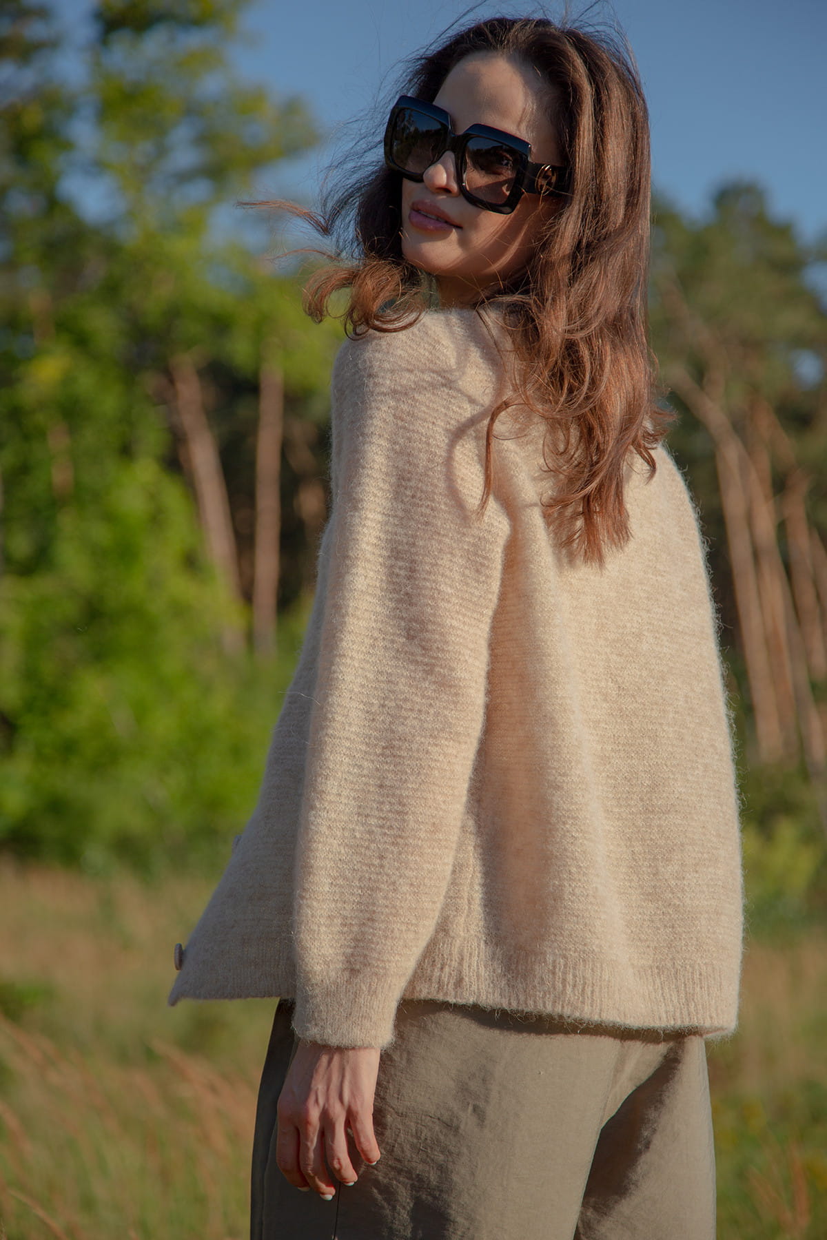Delikatny kardigan z niefarbowanej wełny alpaki to esencja elegancji i komfortu. Wykonany z najwyższej jakości włókien alpaki to prawdziwa perełka w świecie mody. Jego subtelna faktura jest przyjemna w dotyku i zapewnia niezrównany komfort noszenia przez wiele sezonów. Guziki z prawdziwego drewna dodają naturalnego uroku, podkreślając ekologiczny charakter tego wyjątkowego produktu. Niefarbowana wełna alpaki zachowuje naturalny kolor alpaki, co nadaje kardiganowi piękny beżowy kolor, pasujący do wielu różnych stylizacji.